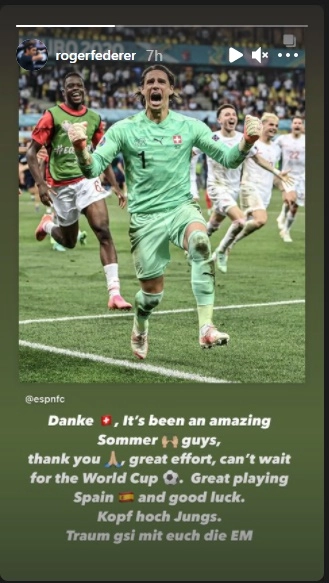 The Swiss ace has been following the football team's performance quite closely and had even hailed them when they had made way into the round-of-16. Federer took to his Instagram story and posted a picture of the team celebrating a goal. "It's been an amazing summer guys. Thank you, great effort, can't wait for the World Cup," he wrote. Federer did not forget to laud team Spain for their effort as well.