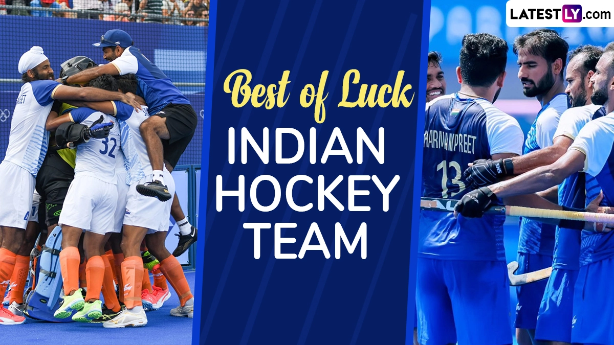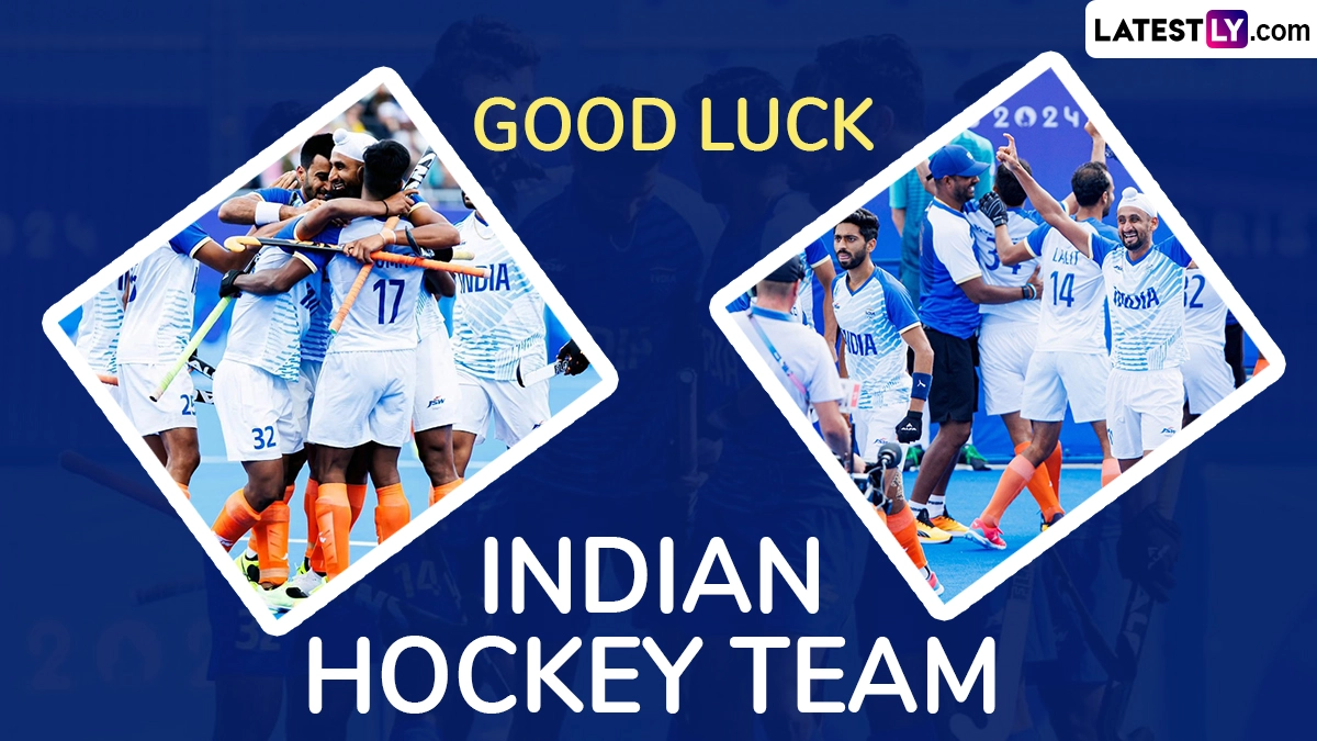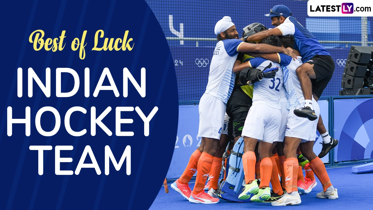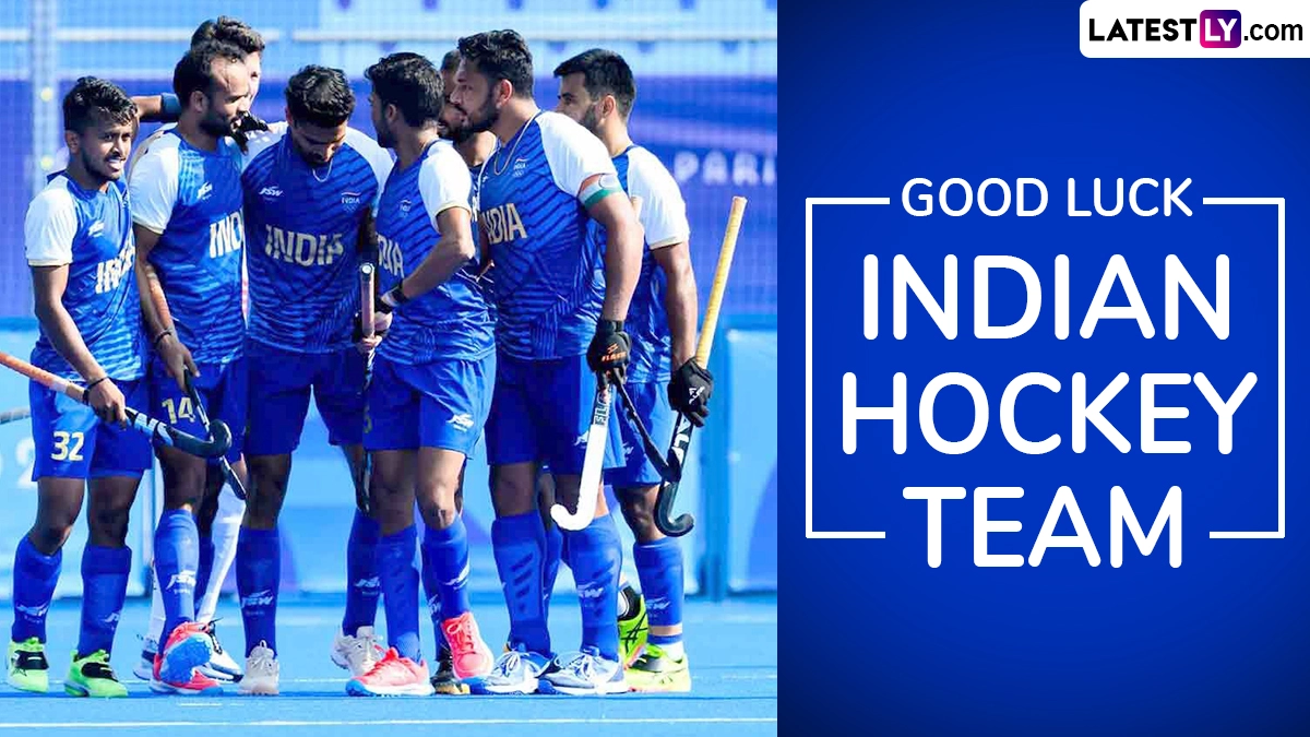 The Indian men's hockey team will be out to secure another podium finish at the Olympics as they lock horns against Germany in the semifinal of the Paris Olympics 2024 on Tuesday, August 6. Harmanpreet Singh and his team have had a campaign to remember in Paris, which kickstarted with a win over New Zealand. India would go on to play out a draw against Argentina in their second game before beating Ireland 2-0 in their third appearance. Despite losing to Belgium, the Tokyo gold medal winner, India went on to clinch a historic victory over Australia in their final group stage match, a first at the Olympics in 52 years. As the Indian men's hockey team prepares for the semifinal against Germany, we bring some good luck messages and wishes which can be used as WhatsApp DPs, stories, Instagram and Facebook posts and stories. Amit Rohidas Set to Miss Semifinal Clash at Paris Olympics 2024 After Receiving Red Card in Men's Hockey Quarterfinal Game Against Great Britain.