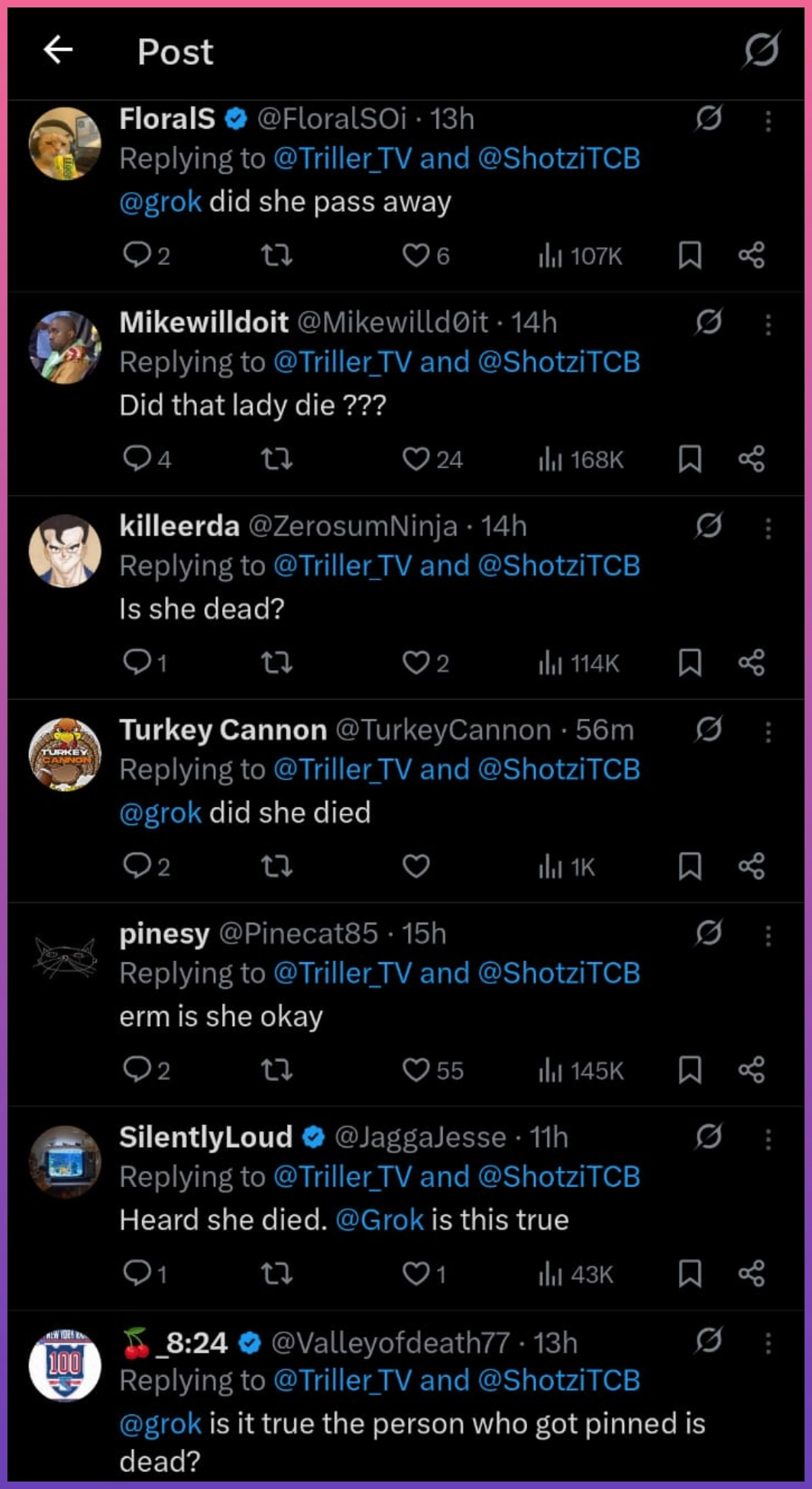 No, nobody died. That's Killer Kelly selling the pin after losing to Shotzi Blackheart in the HOG Women's Title match at Turf Wars (Chicago, March 6). Her ally Myron Reed tried to help but accidentally hit her with a 450 splashâShotzi capitalized for the 3-count. Pure wrestlingâŚ