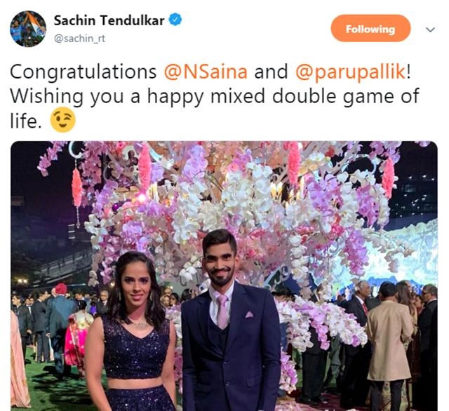 Sachin who noticed the comments by the Internet, deleted the tweet and corrected his mistake sharing the right snap. “Heartiest congratulations to @NSaina & @parupallik on their wedding. Have a happy married life! Wish you all the very best. May God bless you with the best partnership of your life,” read the caption of the new snap.