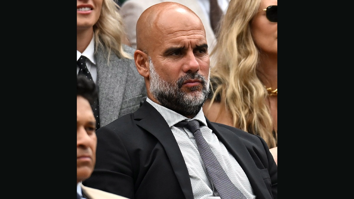 The Spanis manager who helped Manchester City become the first team to lift four consecutive Premier League titles wa also present at the Centre Court along with Sachin Tendulkar.