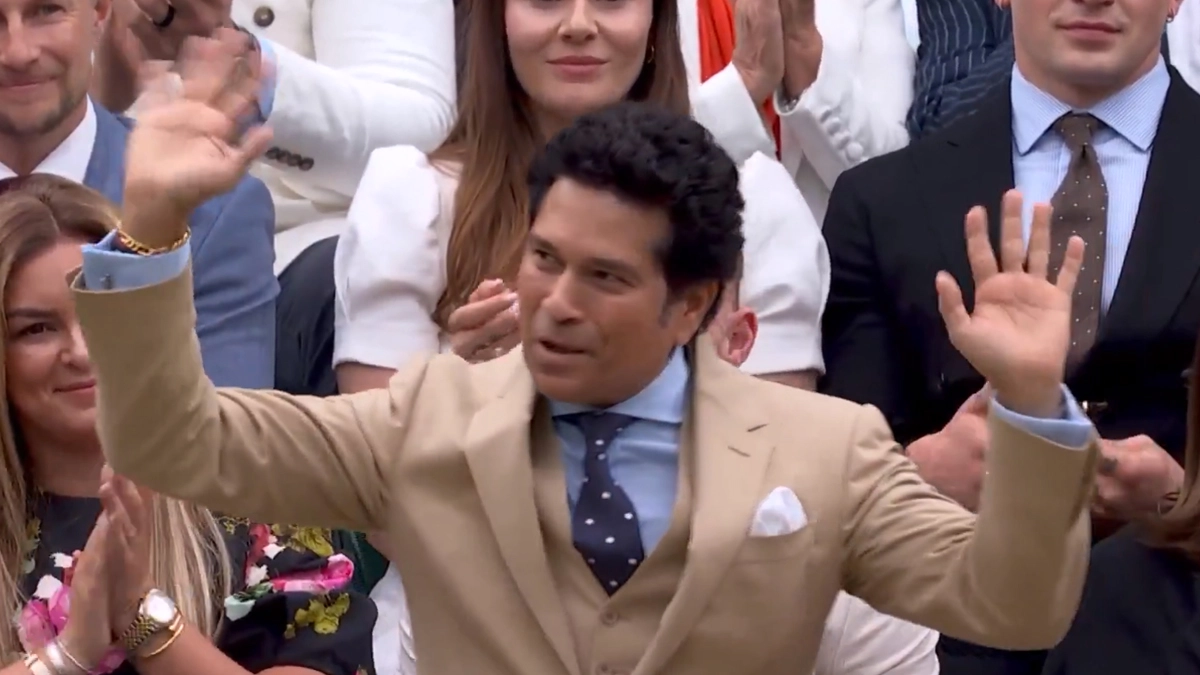 Englands' Test captain Ben Stokes was sitting right behind the Indian legend Sachin Tendulkar at the Centre Court.