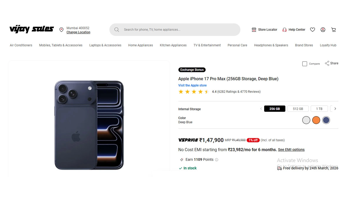The iPhone 17 Pro Max remains a high-demand item due to its A19 Pro chipset and its transition to a 48-megapixel triple-camera system across all lenses. Retailers often use these price corrections in March to clear inventory ahead of the mid-year cycle. While Apple rarely offers direct discounts on its own web store, authorised third-party partners like Vijay Sales utilise these promotional windows to remain competitive against rival platforms like Amazon and Flipkart.