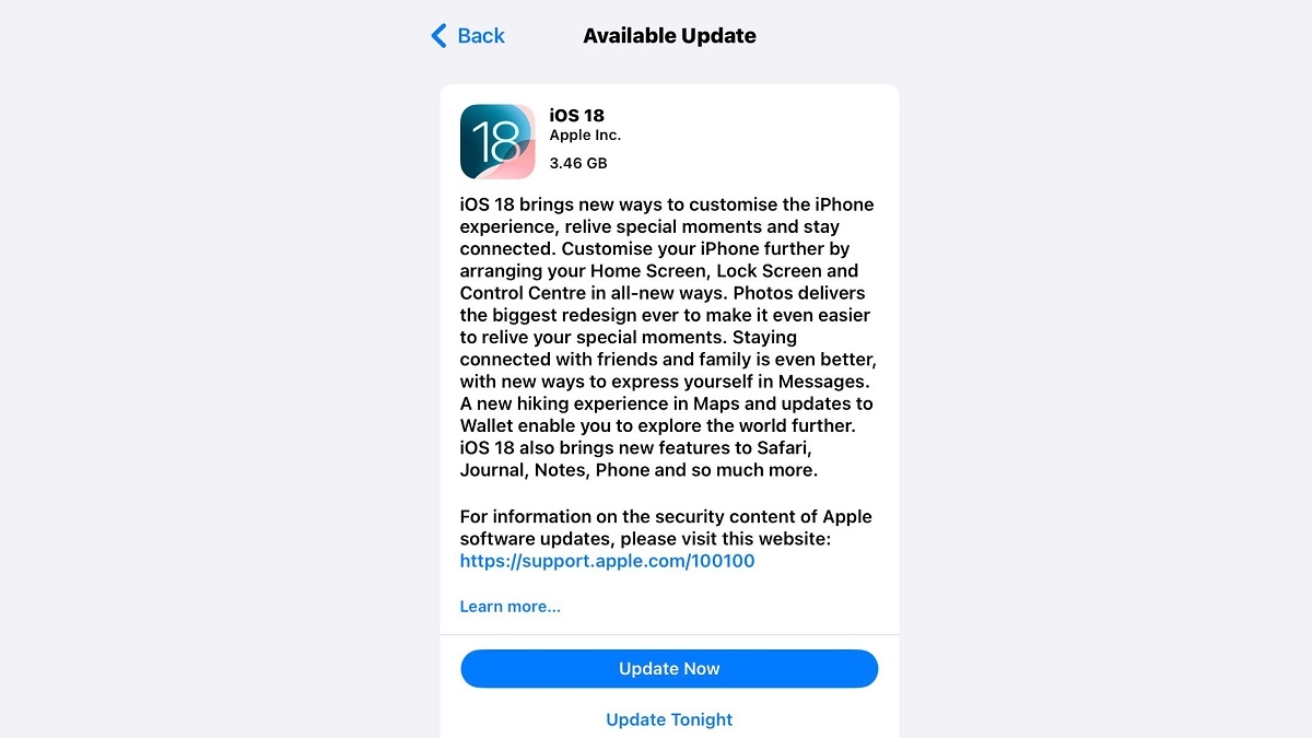 New Delhi, September 16: Tech giant Apple on Monday released the next version of its operating system, iOS 18, which is a free download and offers iPhone users around the world new ways to personalise their devices. It allows new ways to personalise their iPhone with deeper customisation to the Home Screen and Control Center; the biggest-ever redesign to Photos, making it even easier to find and relive special moments; and major enhancements to Messages and Mail.