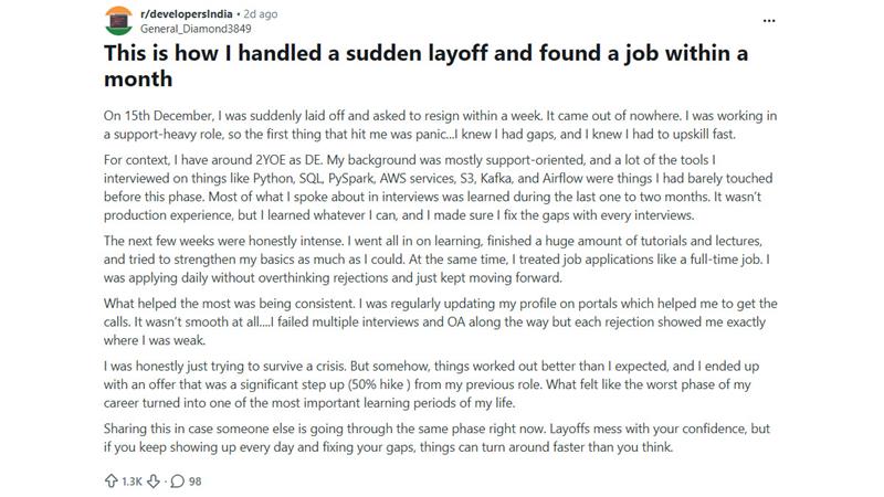 Viral Reddit Post of Laid Off Techie