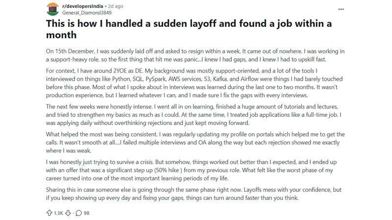This success story comes at a time when the global tech sector continues to face fluctuations and workforce reductions. The narrative has resonated with thousands of professionals online, serving as a reminder that the period following a layoff can be transformed into a productive learning chapter. The individual concluded that while layoffs can damage one's confidence, consistent effort and a structured approach to addressing skill gaps can lead to outcomes that exceed original expectations.