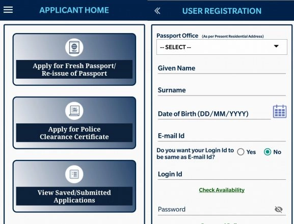 Passport Seva App (File Photo) - Once done with logging into the app, the users are directed to application Home with options to apply for new/reissue of passport, police clearance certificate as well as viewing submitted applications.