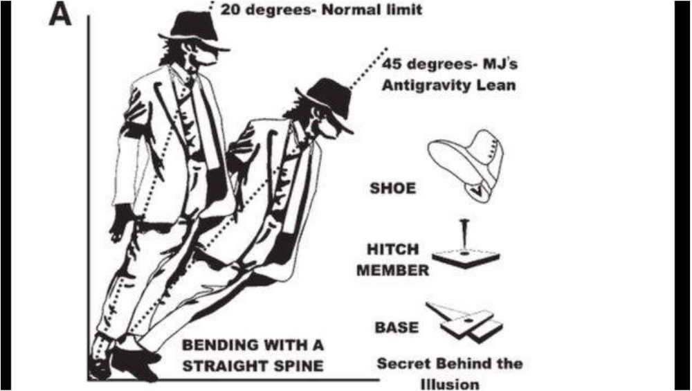 The trick was in the one-of-a-kind shoe designed for Jackson that would assist him in pulling off the move. The shoes had a specially designed heel peg that would protrude and connect to the stage, allowing Jackson to shift his balance and perform the lean. Prior to the fancy shoes, Michael relied on supporting cables and a harness around his waist to create the illusion.