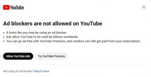 Ad Blockers Are Not Allowed on YouTube Message: